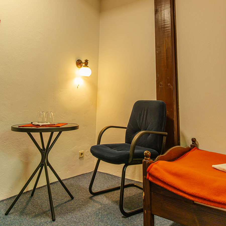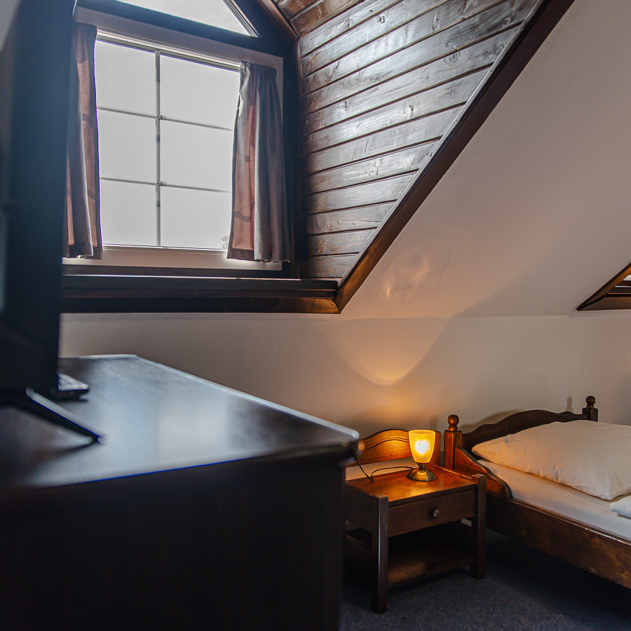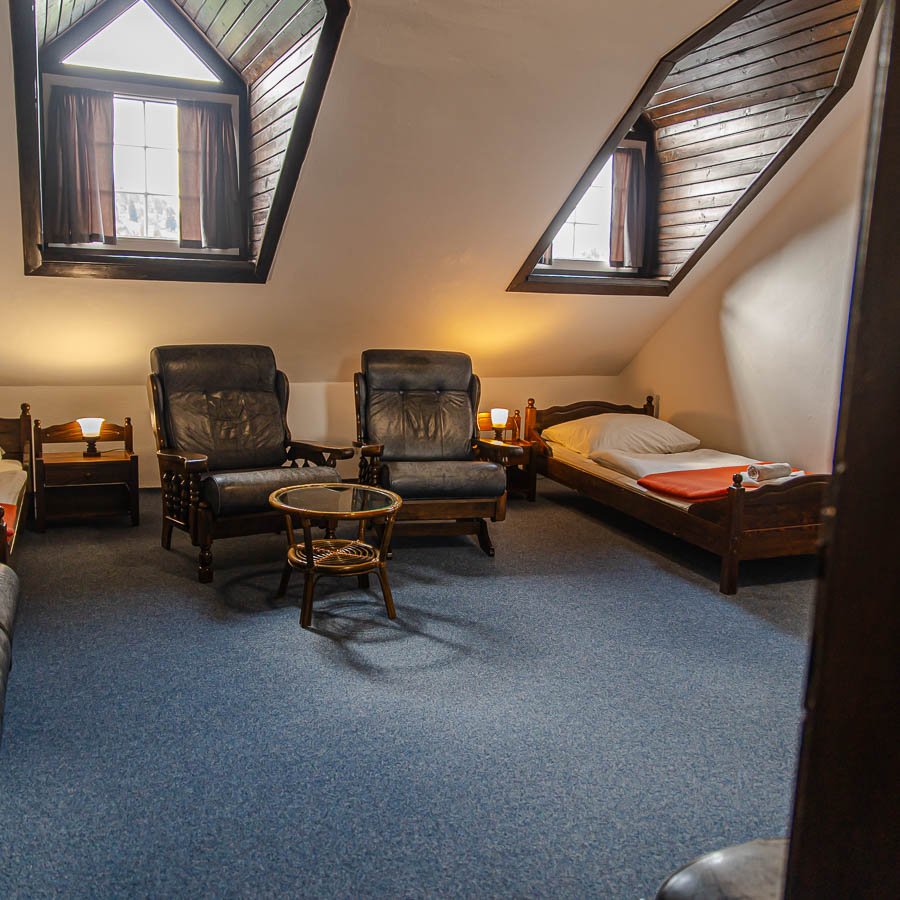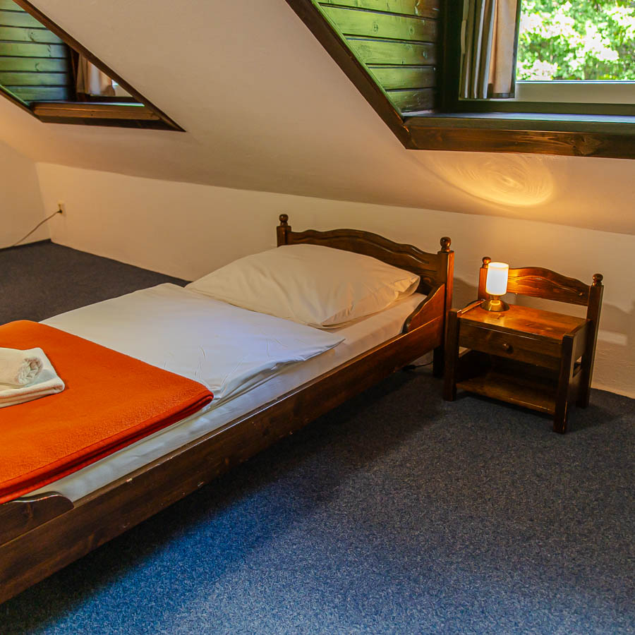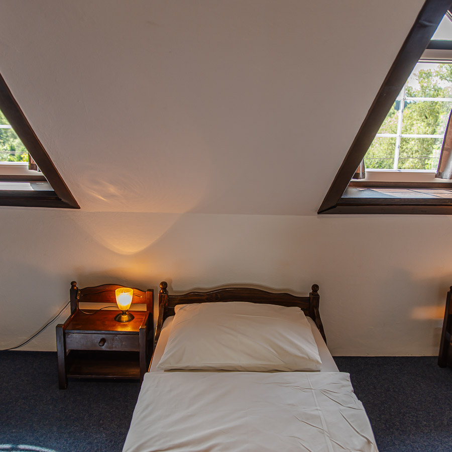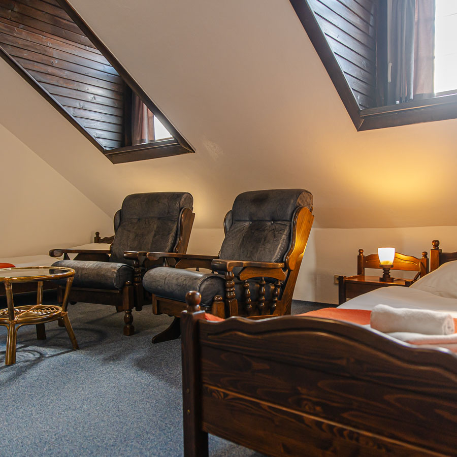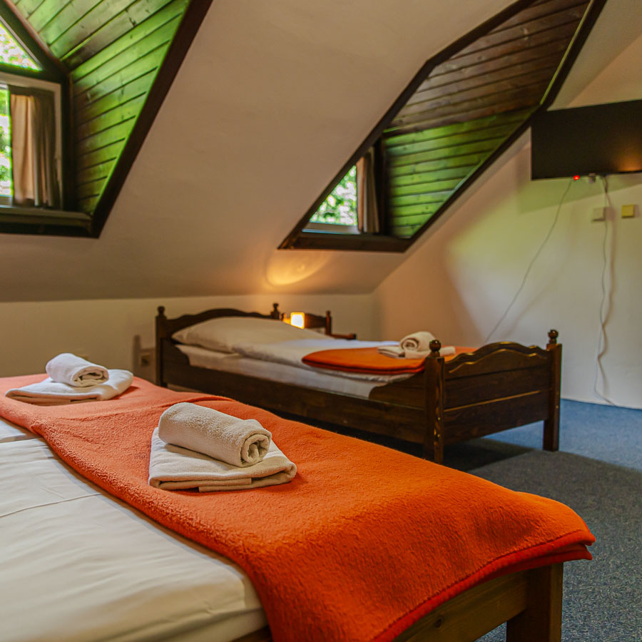 Dvojlôžkové izby sú vkusne zariadené v príjemnom vidieckom štýle a ponúkajú komfortnú manželskú posteľ pre dokonalý oddych. Každá izba má vlastnú kúpeľňu s toaletou, kde na vás čakajú čisté uteráky, osušky, mydlo a šampón. Samozrejmosťou je televízor aj bezplatné Wi-Fi pripojenie, aby ste sa cítili ako doma.