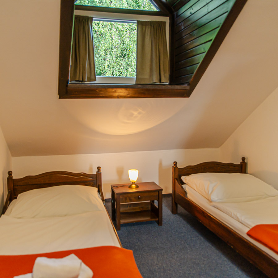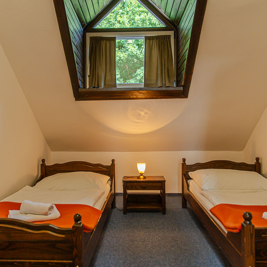 Štýlová dvojlôžková izba ladená v útulnom vidieckom duchu poskytuje dve pohodlné samostatné postele pre váš dokonalý oddych. Samozrejmosťou je vlastná kúpeľňa s toaletou, kde na vás čakajú čisté uteráky, osušky, kvalitný šampón a mydlo. Nechýba televízia a bezplatné Wi-Fi pripojenie na internet, aby ste boli stále v kontakte so svetom.