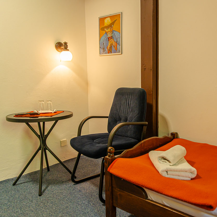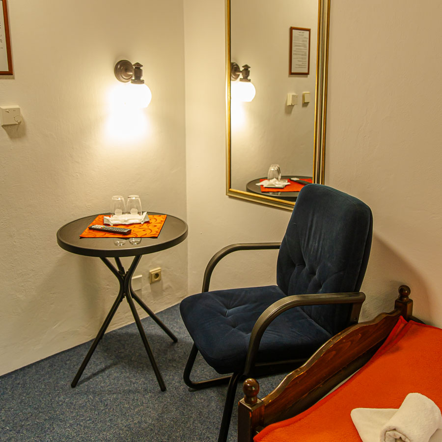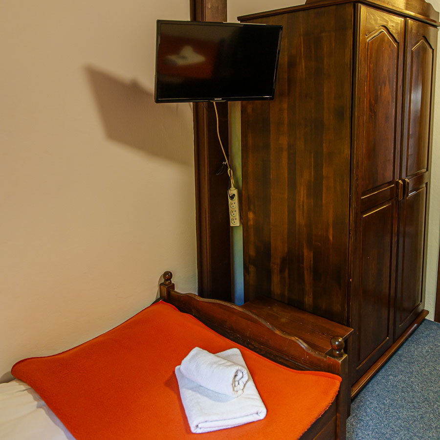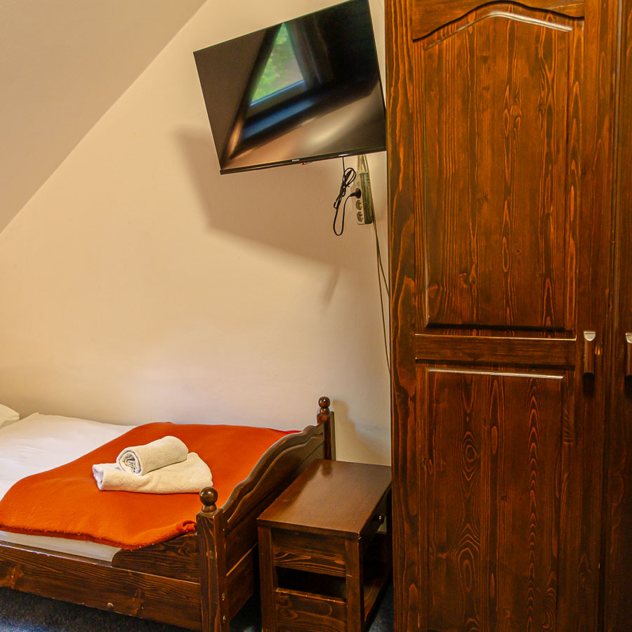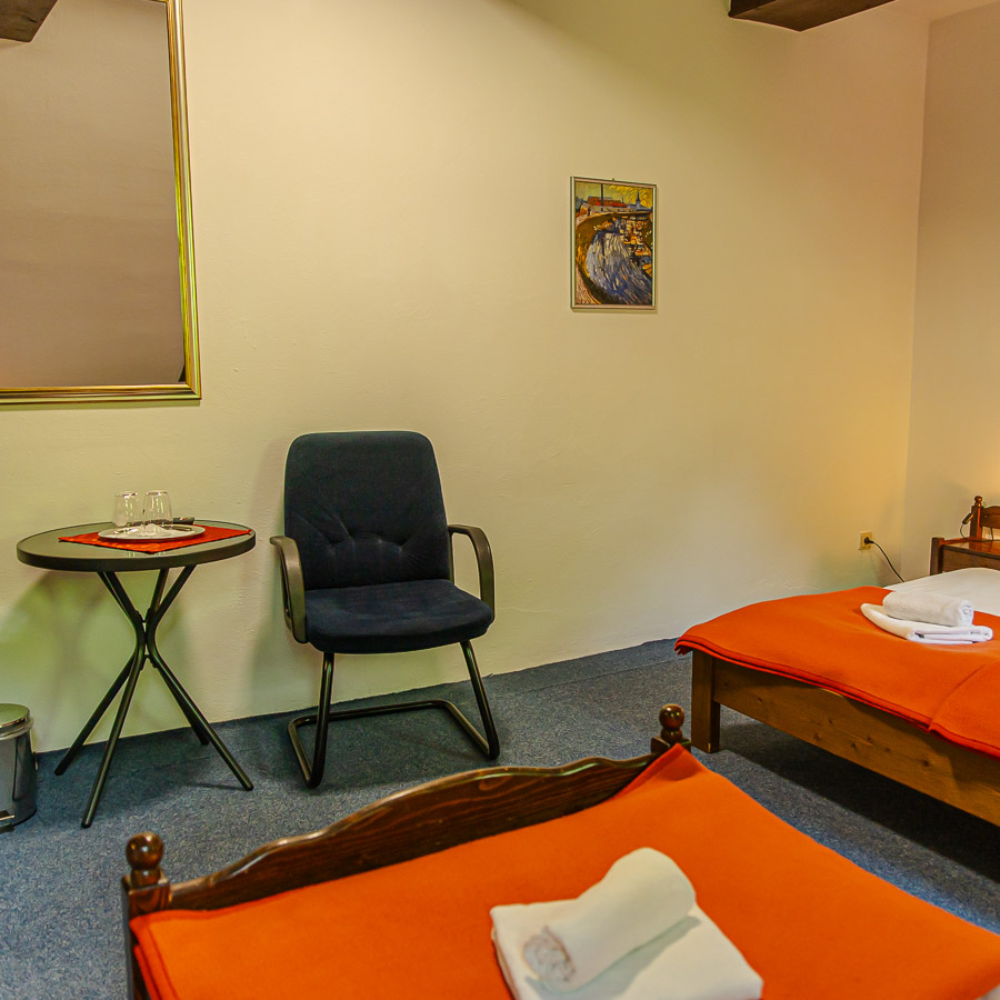 Elegantná izba ladená v rustikálnom štýle ponúka dve pohodlné samostatné postele a vlastnú kúpeľňu s toaletou. K dispozícii sú mäkké uteráky aj osušky, ako aj šampón a mydlo. Nechýba televízor a bezplatné Wi-Fi pripojenie na internet pre vaše maximálne pohodlie.