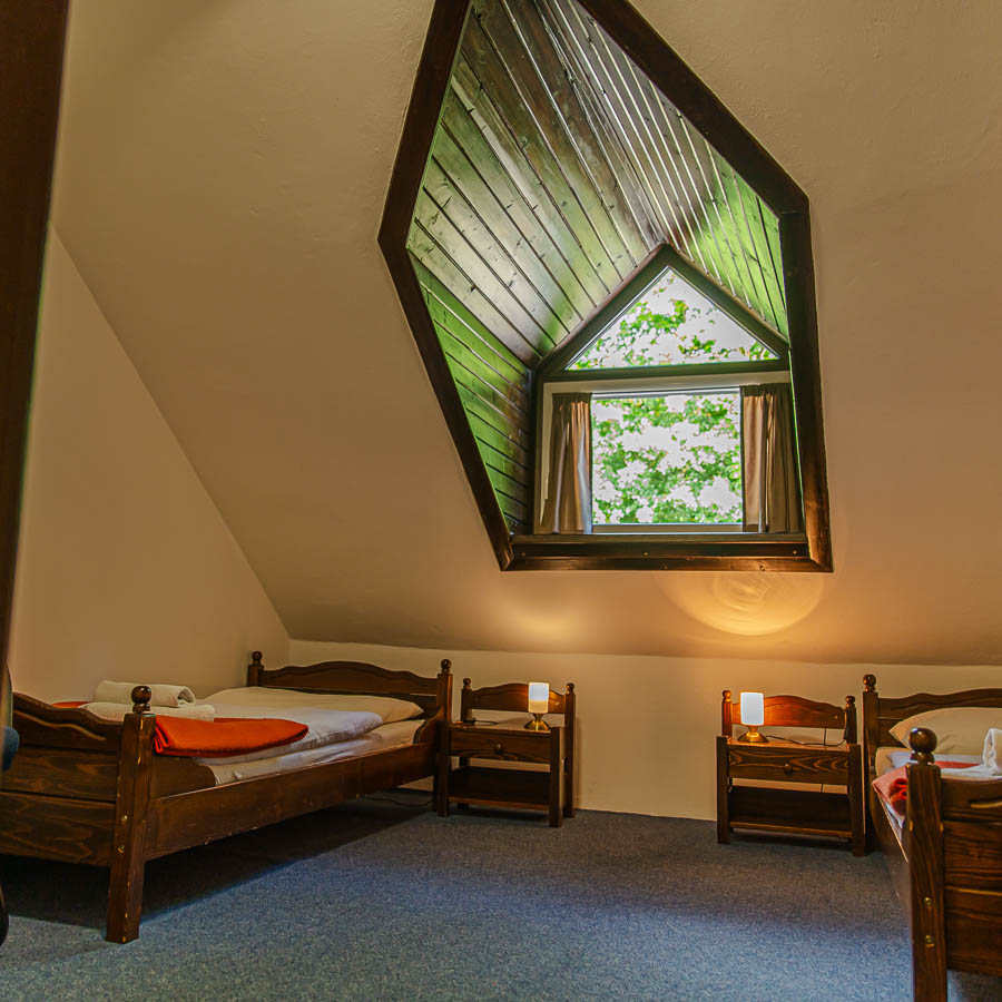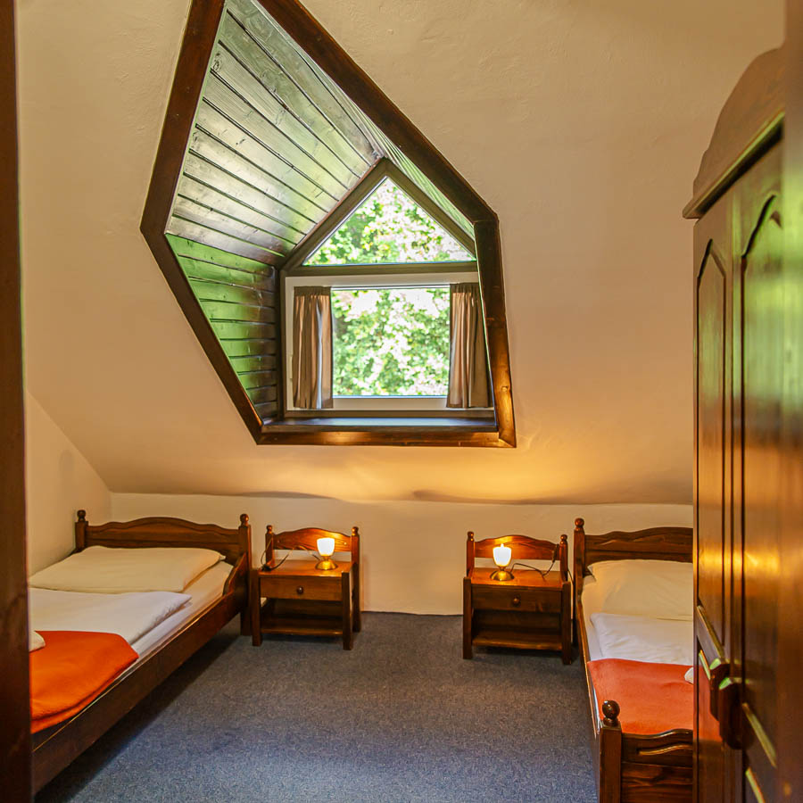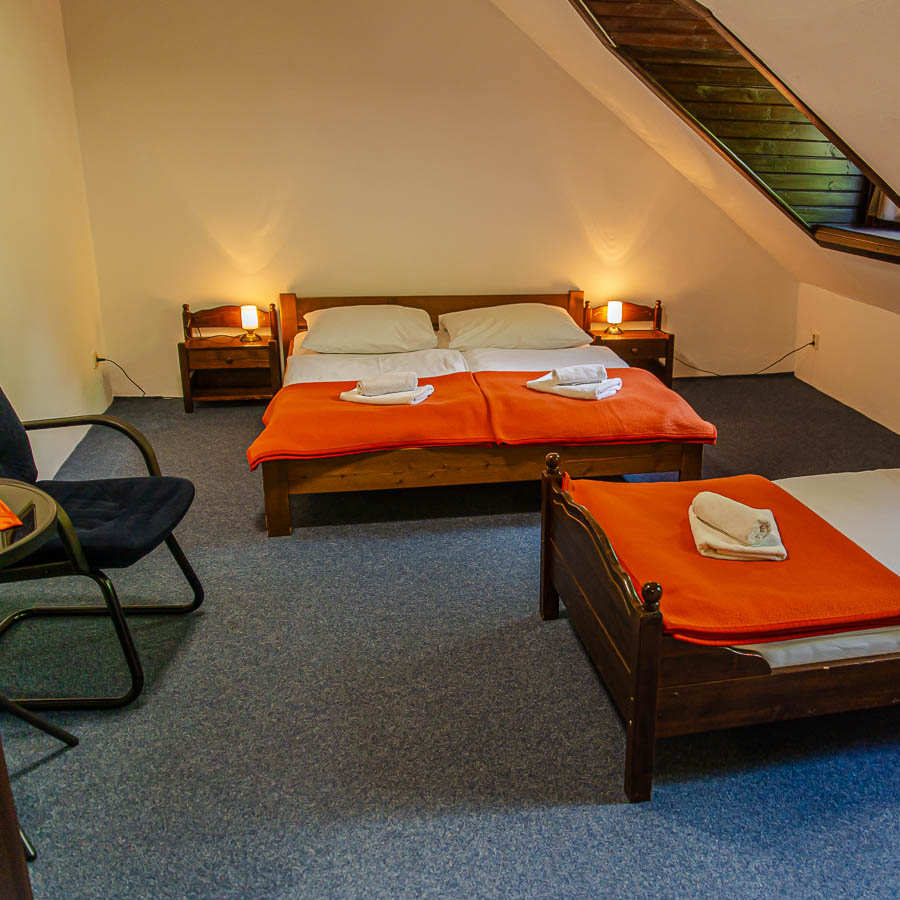 Priestranná izba ladená v príjemnom vidieckom štýle ponúka tri pohodlné samostatné postele pre váš maximálny komfort. K dispozícii máte vlastnú kúpeľňu s toaletou, uteráky aj osušky, šampón a mydlo, televízor a bezplatné WiFi pripojenie.